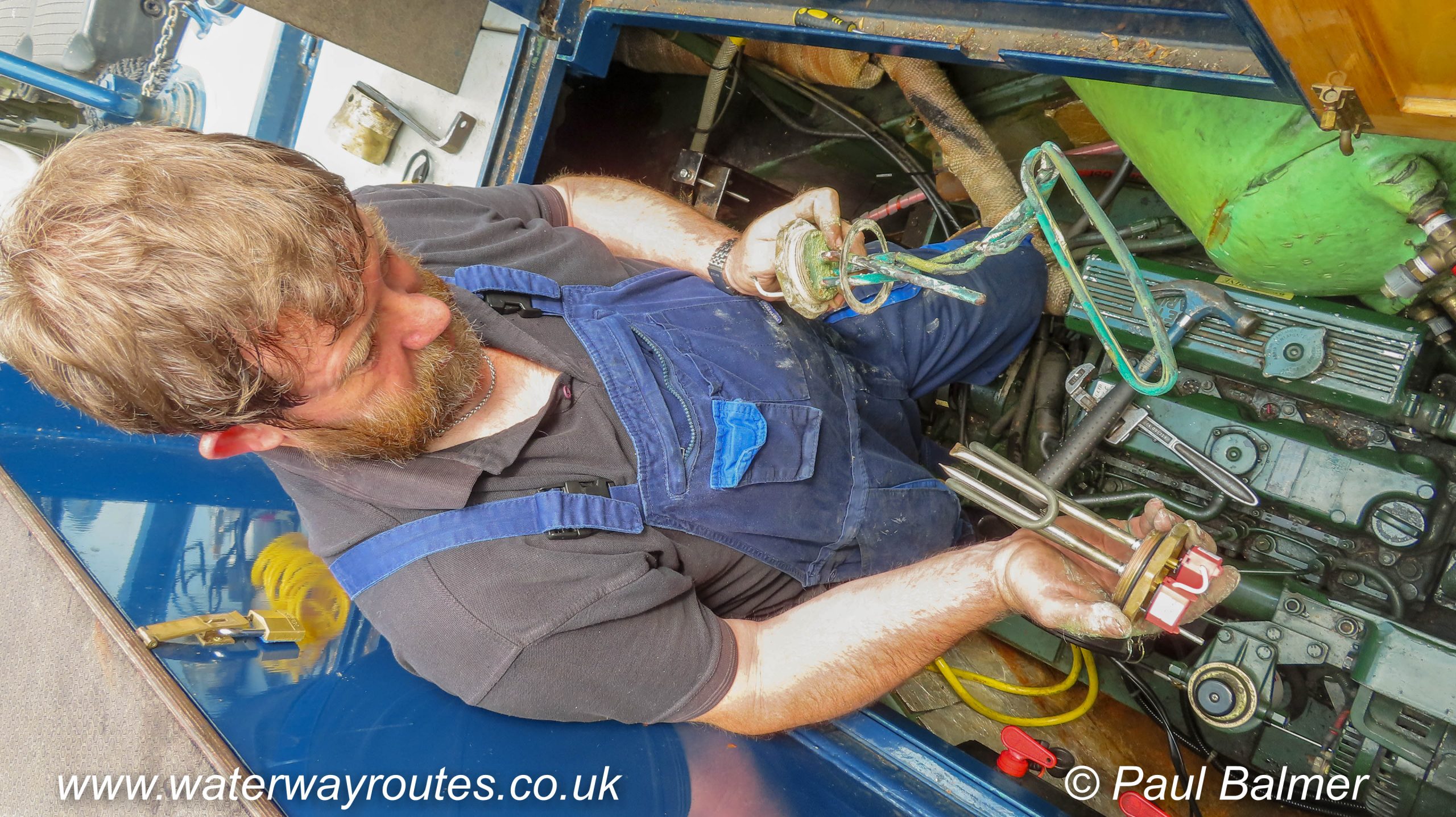 We stopped at Knowle Hall Wharf last night so the engine and hot water tank could cool down overnight ready for Ian Taylor to fit a new immersion heater. The old one had stopped...