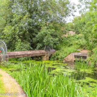 The picnic site and interpretation board above the arched Heyworth Green Bridge