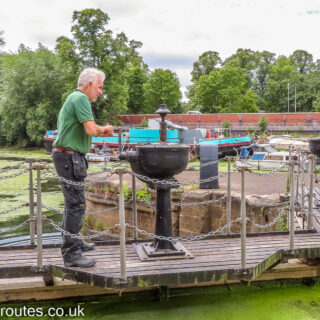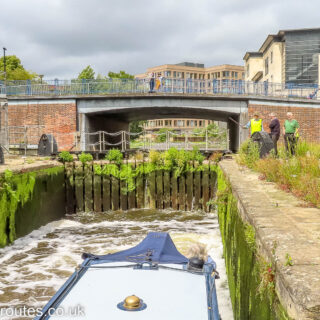 Keeping well back in Castle Mills Lock as the volunteers from the IWA (Inland Waterways Association) operate the lock for us to take our Waterway Routes narrowboat through.