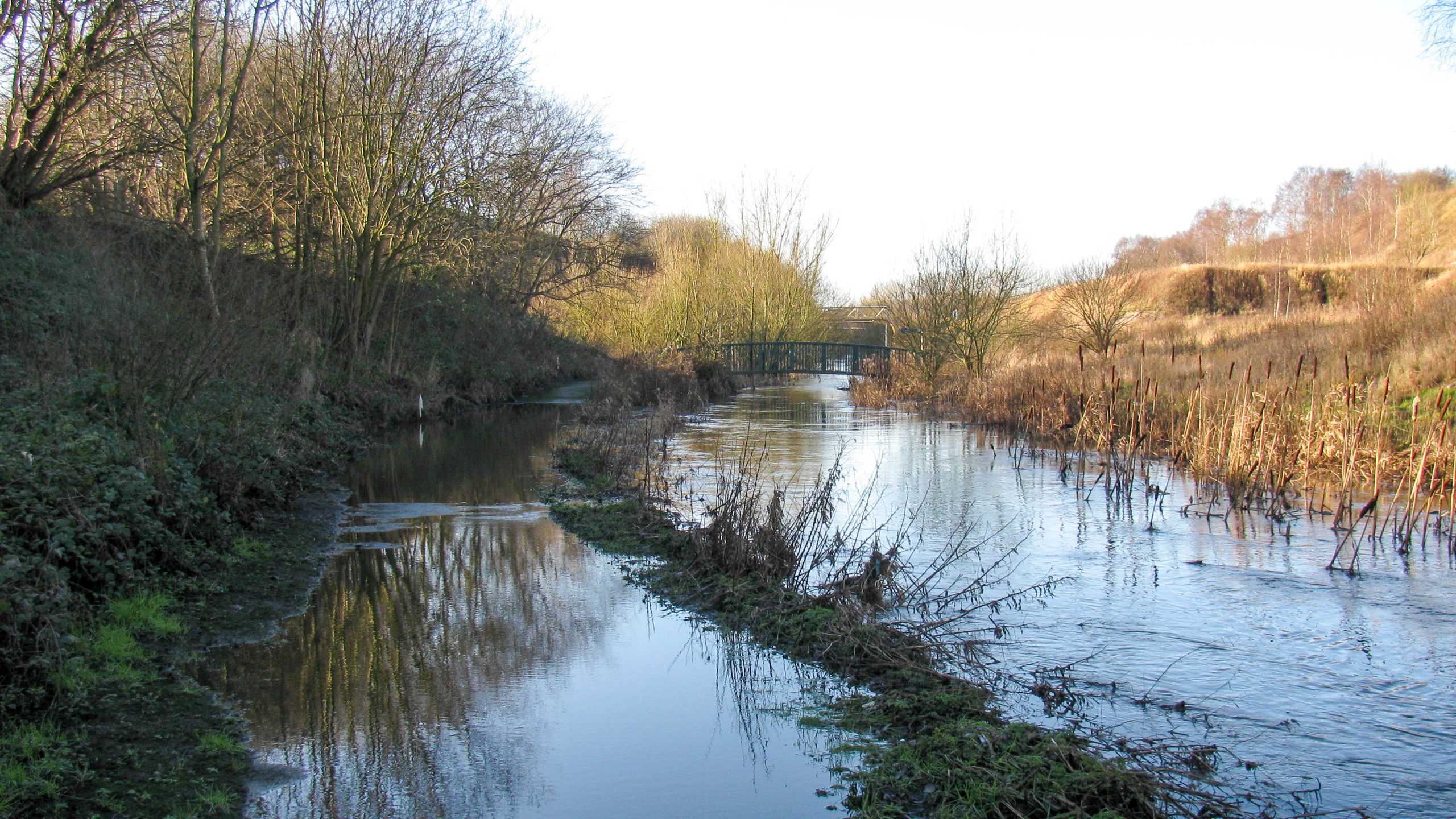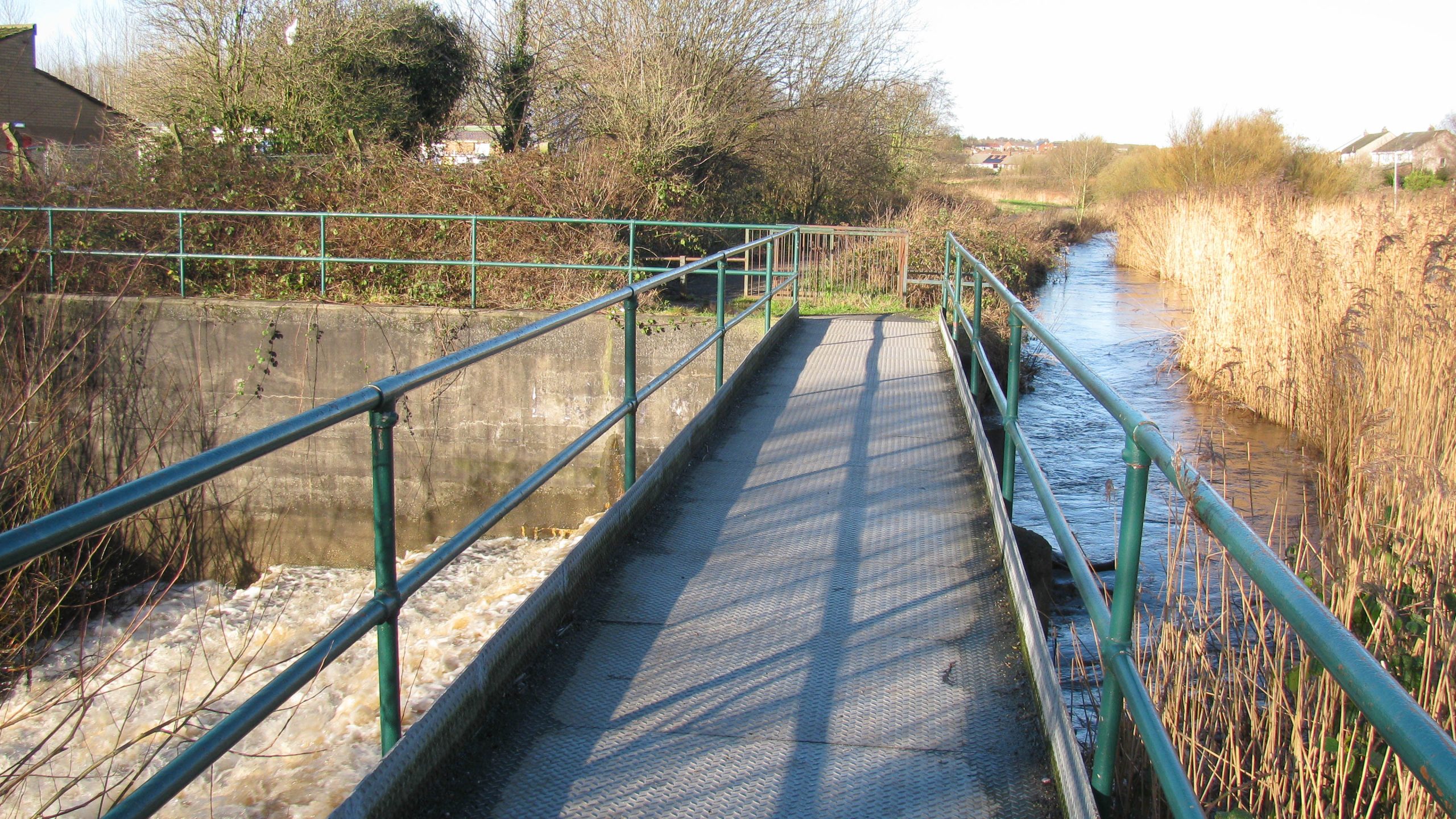 < Next Gerard’s Bridge Branch Next > < New Double Lock Jn Old Double Locks Jn > A low footbridge crosses the channel close to the normal water level. After recent heavy rain the water levels...