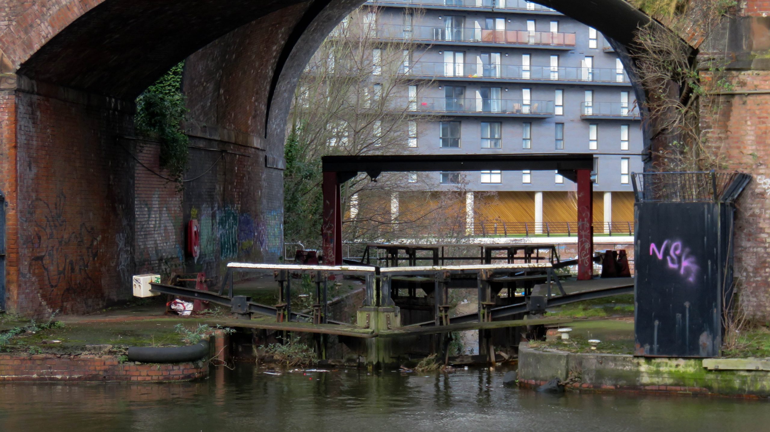 < Next Hulme Locks Branch Next > < River Irwell Jn Hulme Locks Jn > Viewed from below, the bottom gates of the bottom lock on the Hulme Locks Branch have drifted open and all sorts...