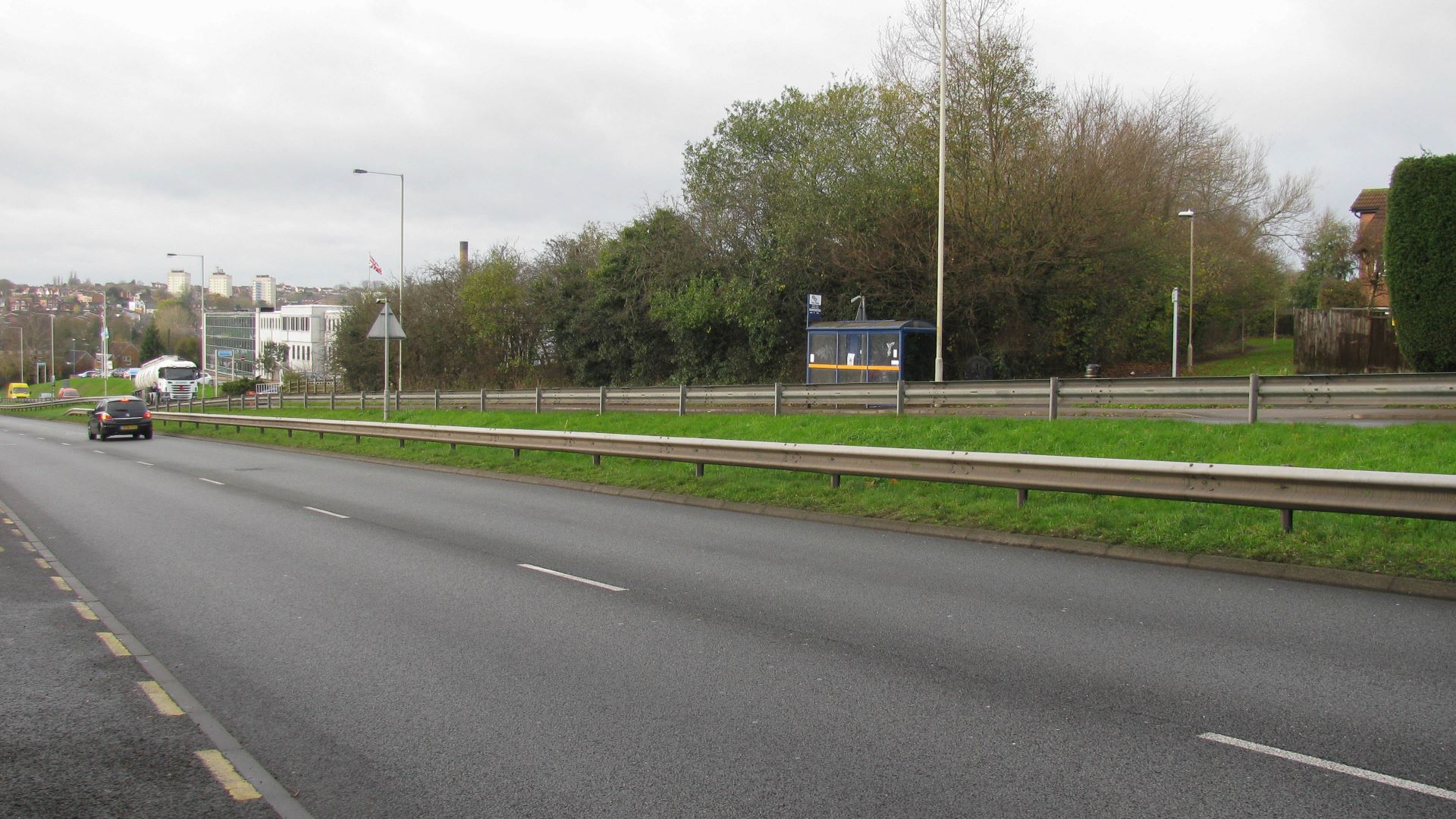 < Next Lapal Canal Next > < Hawne Basin Selly Oak > The photo is taken alongside the bus stop in the next photo (towards Selly Oak) where the footpath follows the route of the Dudley No 2 Canal,...