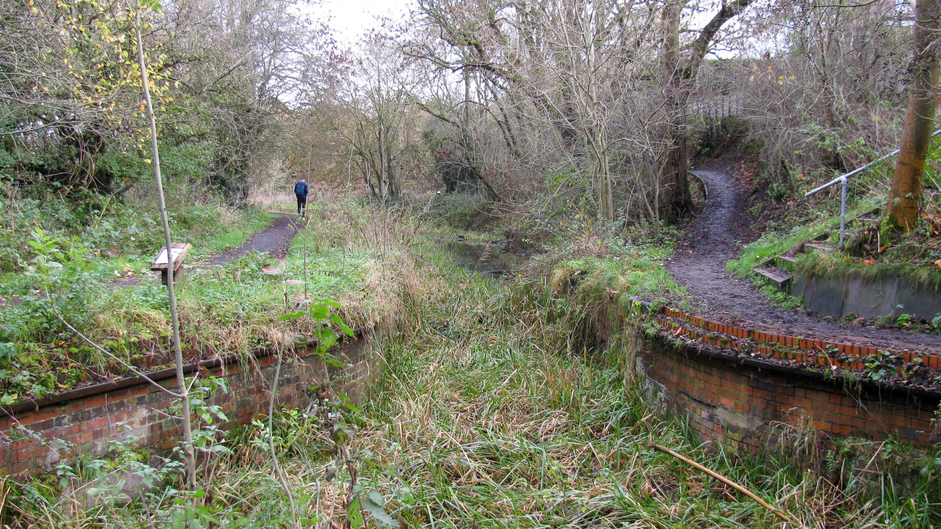 < JUMP TO Blackbrook Branch Next > < Old Double Locks Jn Old Double Locks Jn > Looking back from the small basin at the limit of navigation on the Blackbrook Branch of the St Helens...