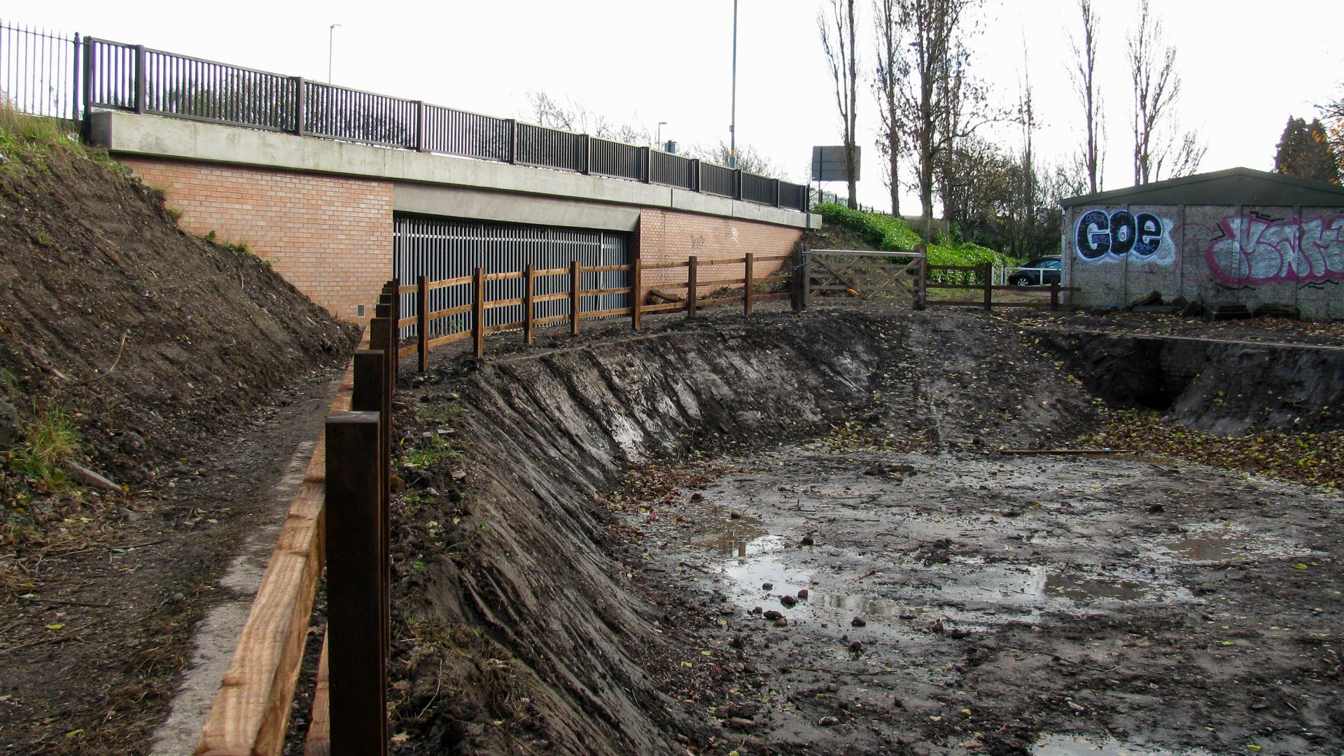 < Next Boardman’s Bridge Branch Next > < Ravenhead Branch Jn New Double Locks Jn > The first bridge, with the light coloured railings, has been replaced by a causeway and the road level will have...
