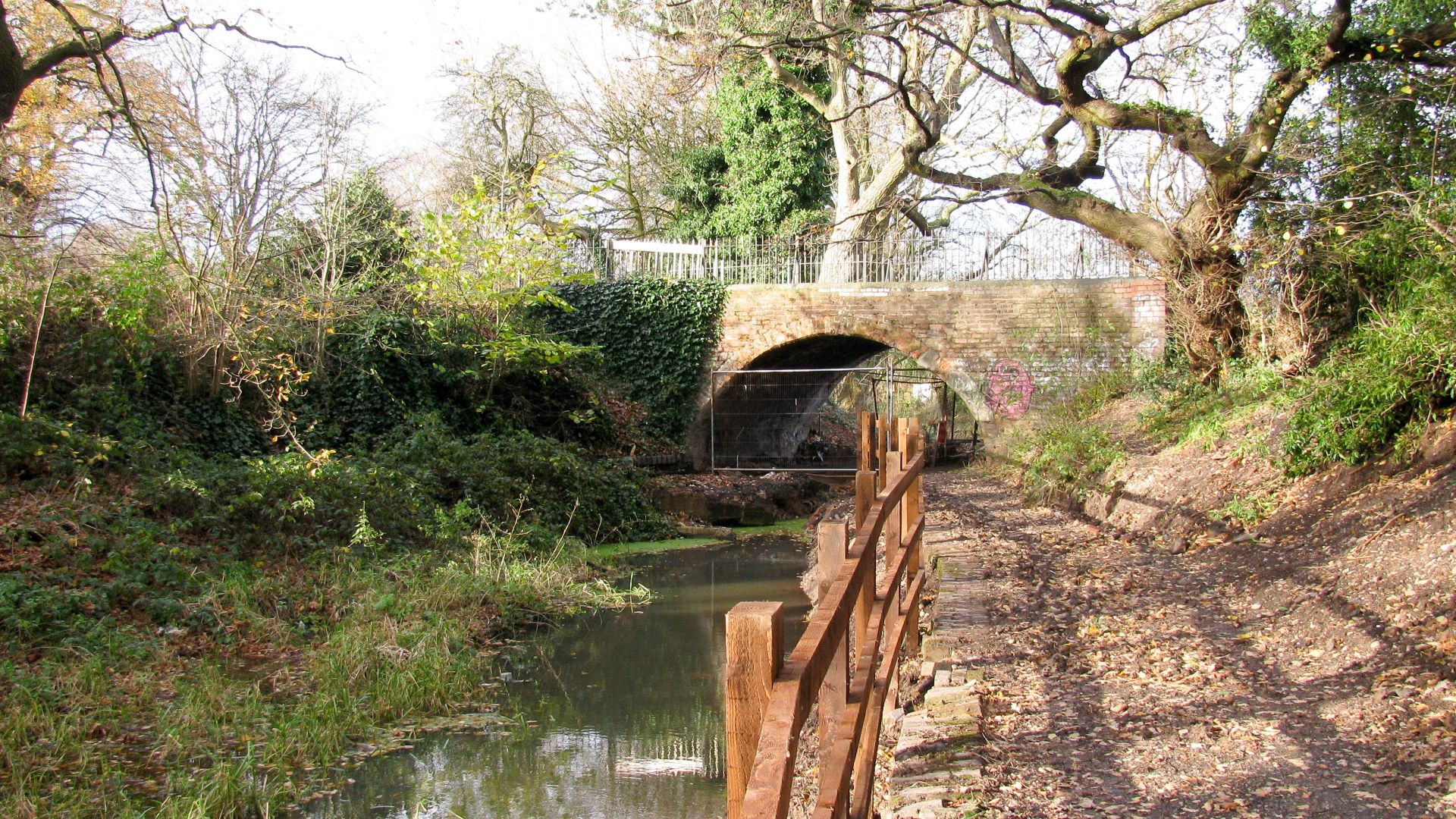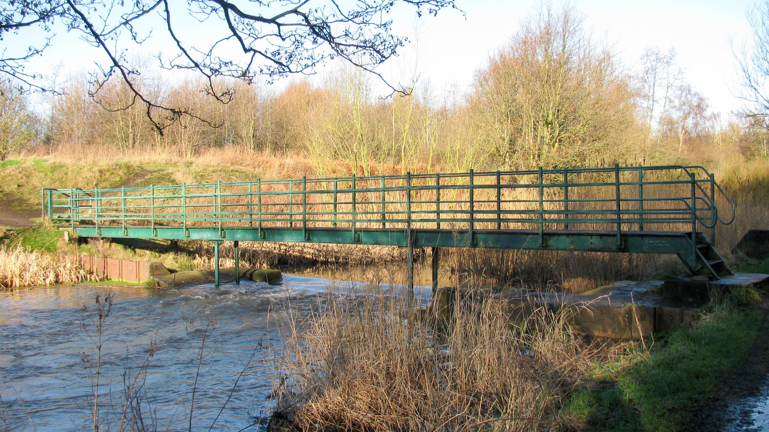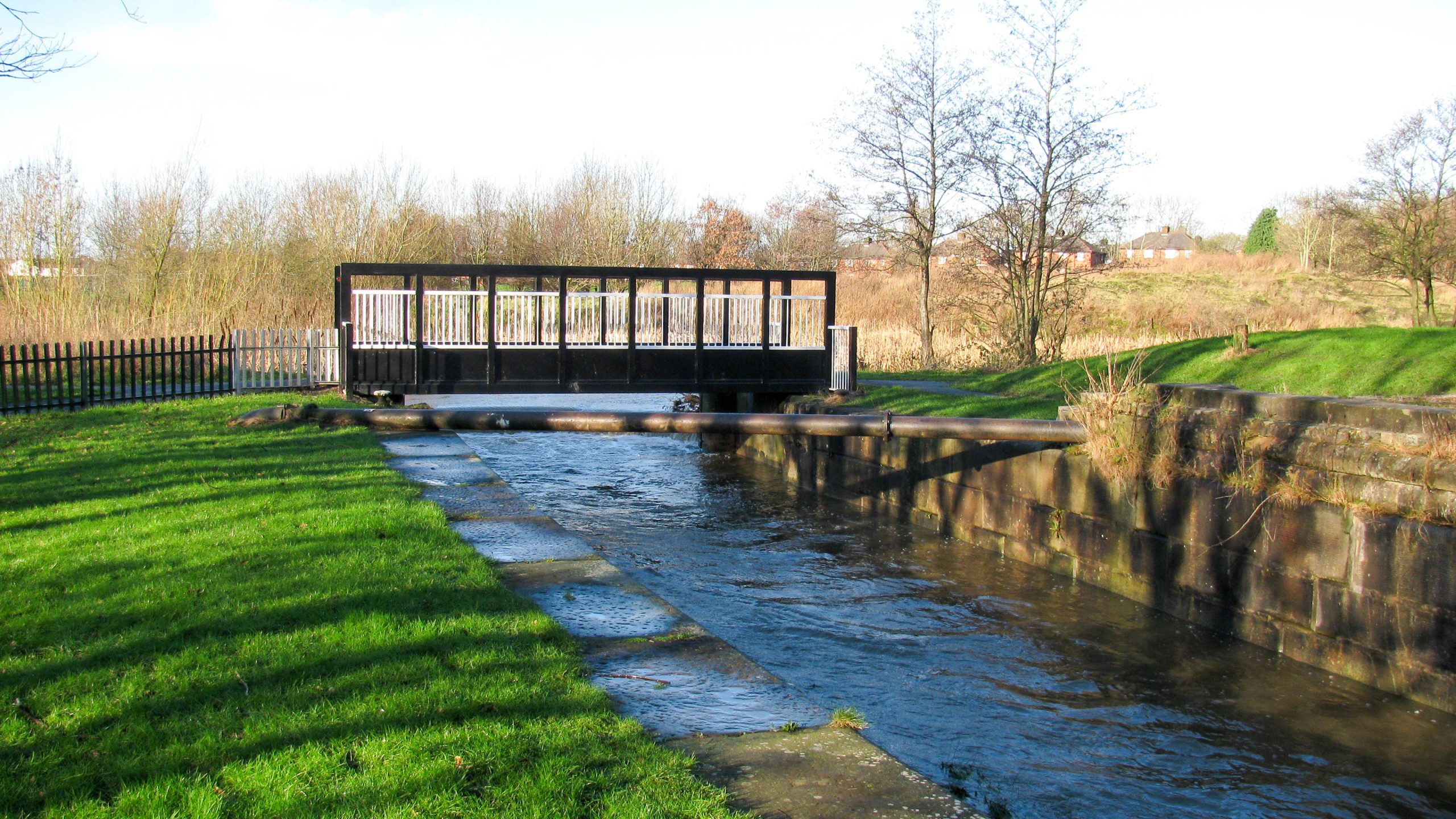 < Next Blackbrook Branch Next > < End of Navigation Old Double Locks Jn > A footbridge crosses near the start of the Blackbrook Branch. There’s also a small weir under the bridge. Waterway and Kilometerage...