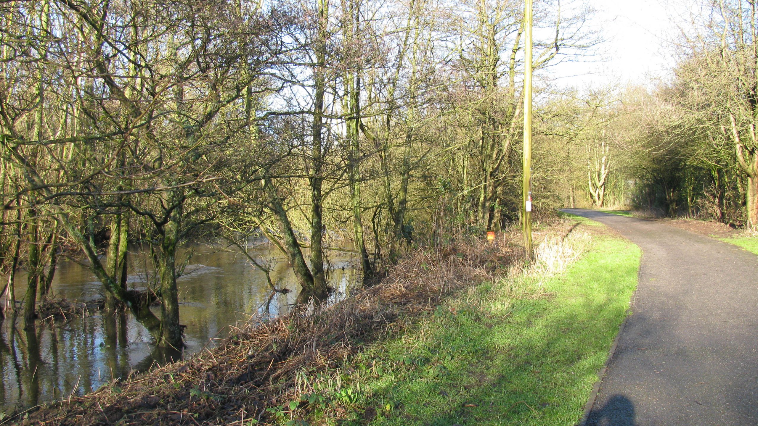 < Next Gerard’s Bridge Branch Next > < New Double Lock Jn Old Double Locks Jn > Exceptionally high water levels after recent heavy rain meant the towpath became flooded and is hard to distinguish from...