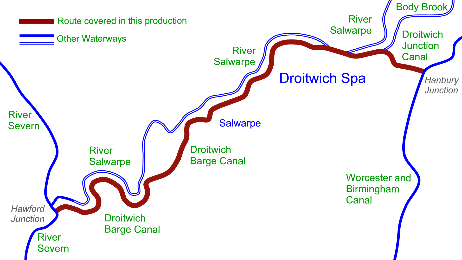 Watch the leisurely cruise through the mixture of rural and urban settings along the full length of the restored Droitwich Canals.
